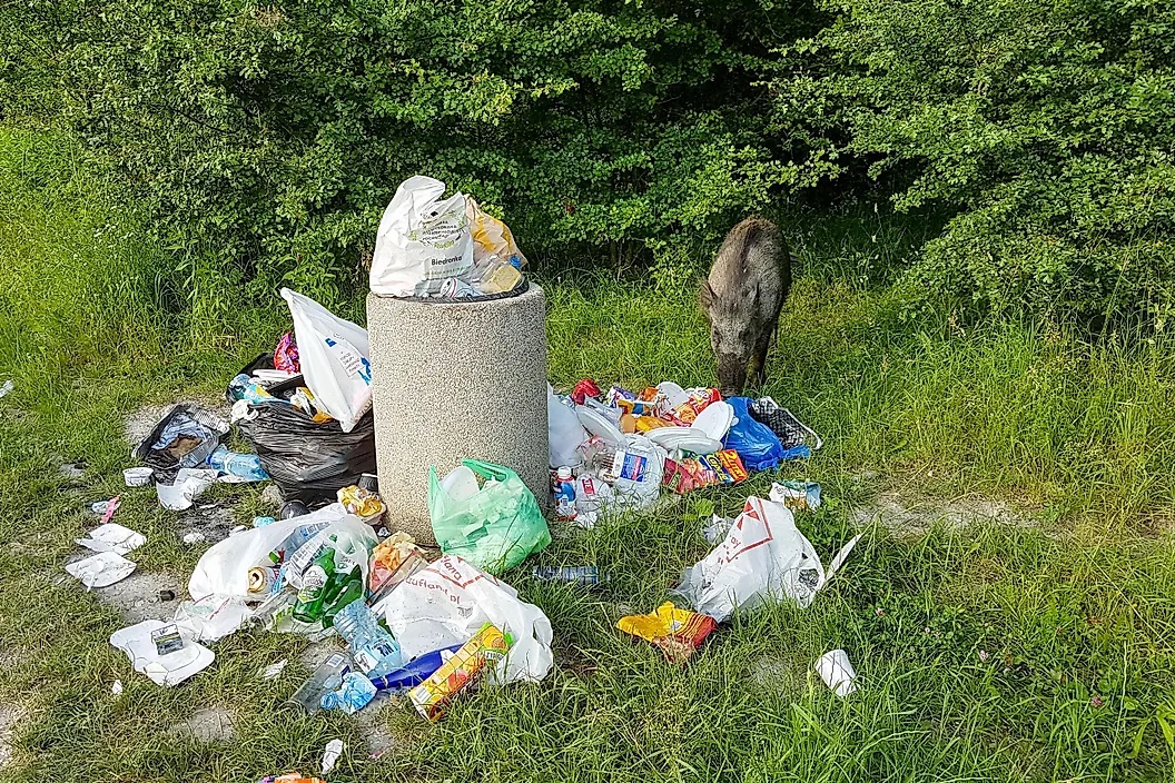 Wild boars have one of the most versatile diets among omnivores. They feed on roots, shoots, fruits, nuts, seeds, and a range of other plant matter. They also feed on a variety of insects, earthworms, fish, rodents, birds, reptiles, amphibians, and of course, carrion. These animals primarily forage for food on the ground or dig into the ground. Wild boars also eat tree bark and mushrooms when regular food becomes scarce. They are often labeled as vermin in agricultural areas as they raid crop fields and eat crops causing economic losses to the farmers.